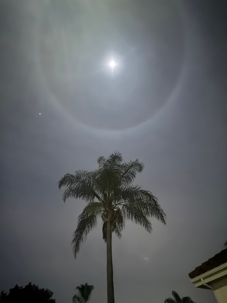 - The moon was surrounded by a subtle rainbow ring — a circle of light, like a message from above